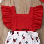 Tuta corta con volant e cerchietto a forma di ciliegia per le bambine