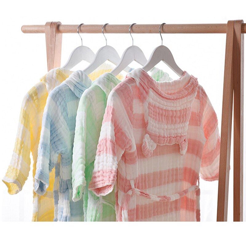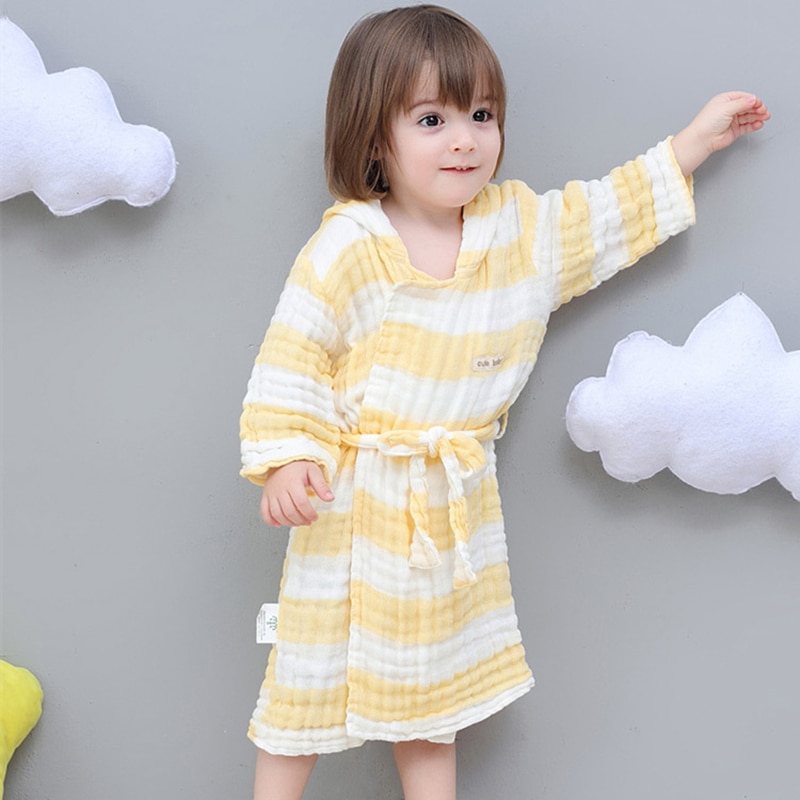 Accappatoio con cappuccio in mussola di cotone a righe per bambine