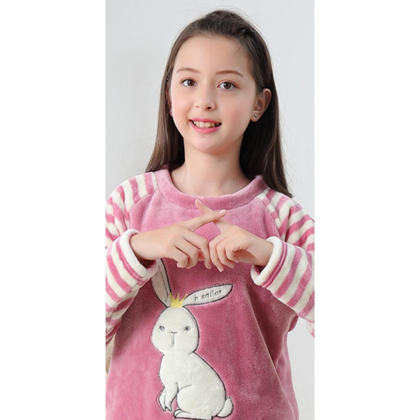 Pigiama caldo a coniglio con strisce bianche per le ragazze