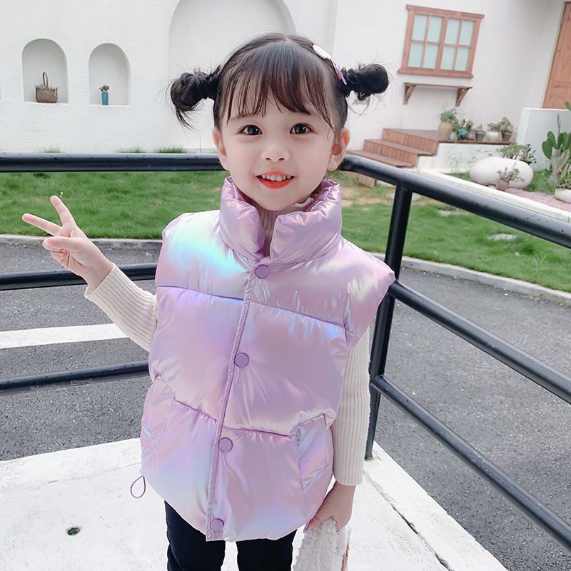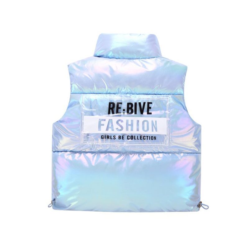 Piumino smanicato spesso e lucido da ragazza