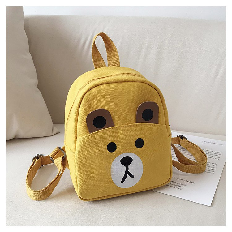 Uno zaino giallo con un simpatico muso di renna per le bambine. Il muso dell'animale è beige e marrone. Ha una maniglia in alto e due spallacci sul retro.