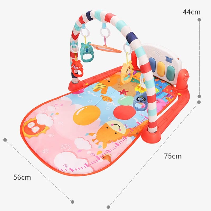 Questo tappeto da gioco per bambina è dotato di un pianoforte musicale e di un arco unico per appendere giocattoli e sonagli. La sua bambina si divertirà molto con questo divertente tappeto attività.
