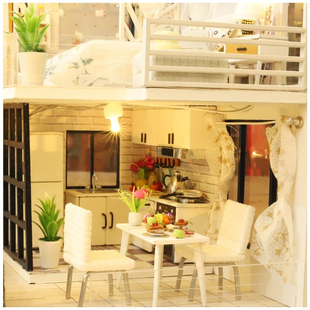 Questa casa in miniatura è stata progettata con grande attenzione ai dettagli, offrendo uno spazio di gioco realistico e affascinante per le bambine.