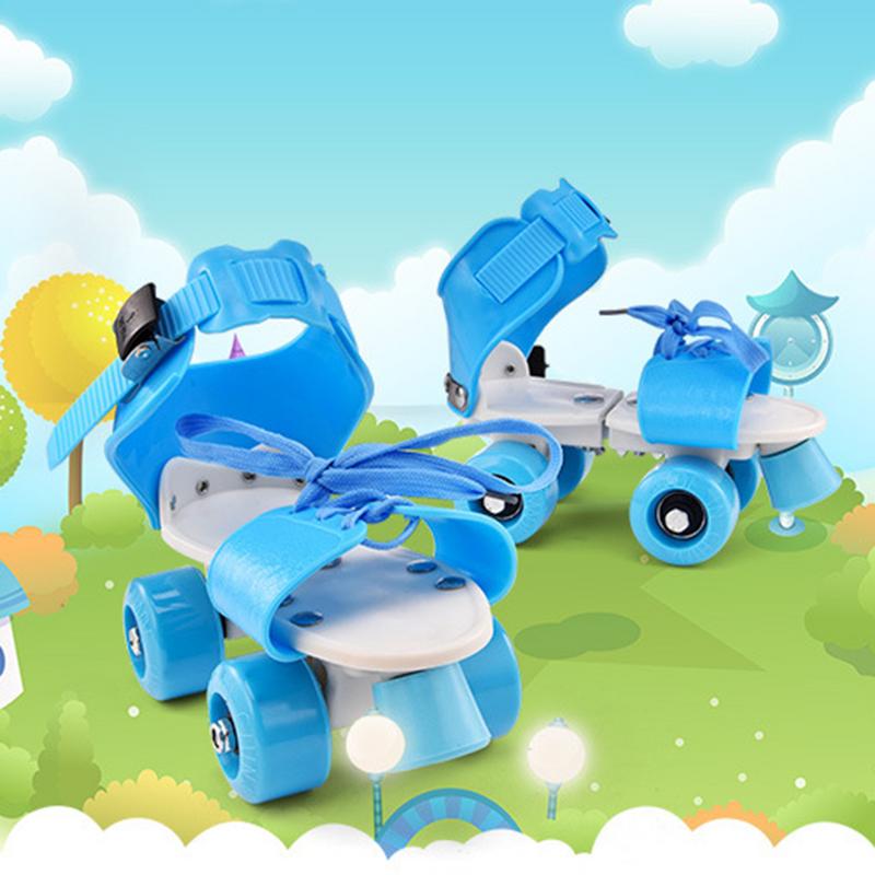 Pattini a rotelle rosa e blu con due piccole ruote posteriori per le ragazze