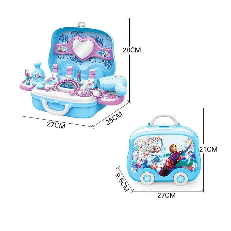 Scatola di cosmetici Elsa e Anna per ragazze, blu e rosa.