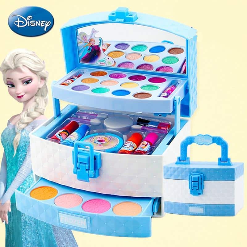 Ecco un grande regalo per tutte le ragazze che sognano la bellezza, il trucco e la Regina delle Nevi. Questo cofanetto è molto completo e, grazie a diversi scomparti ben organizzati, ogni cosa ha il suo posto. Tutti i prodotti sono pensati per i bambini, quindi non c’è alcun rischio. Tutto è facile da trasportare nella scatola, grazie alla maniglia.