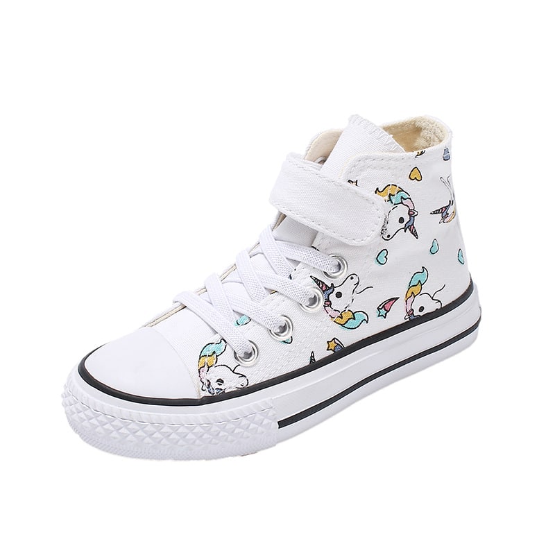 Queste scarpe da ginnastica con unicorno, divertenti e spiritose, sono perfette per la sua piccola fashionista! Sono realizzate in comoda tela e presentano un grazioso motivo di unicorno e arcobaleno. Sono perfette per essere indossate tutti i giorni, a scuola o in giro con gli amici. La sua bambina le adorerà sicuramente!