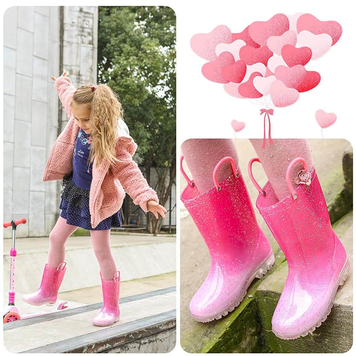 Questi stivali da pioggia con luci LED per bambine sono perfetti per la sua principessa. Sono stivali in PVC lucido con sfumatura rosa e stile bling. Gli stivali hanno un design facile da indossare e da togliere.