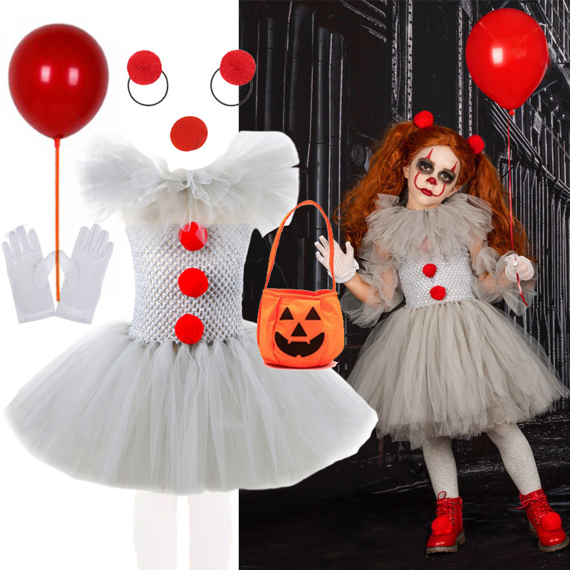 Travestimento di Halloween da clown spaventoso per le ragazze